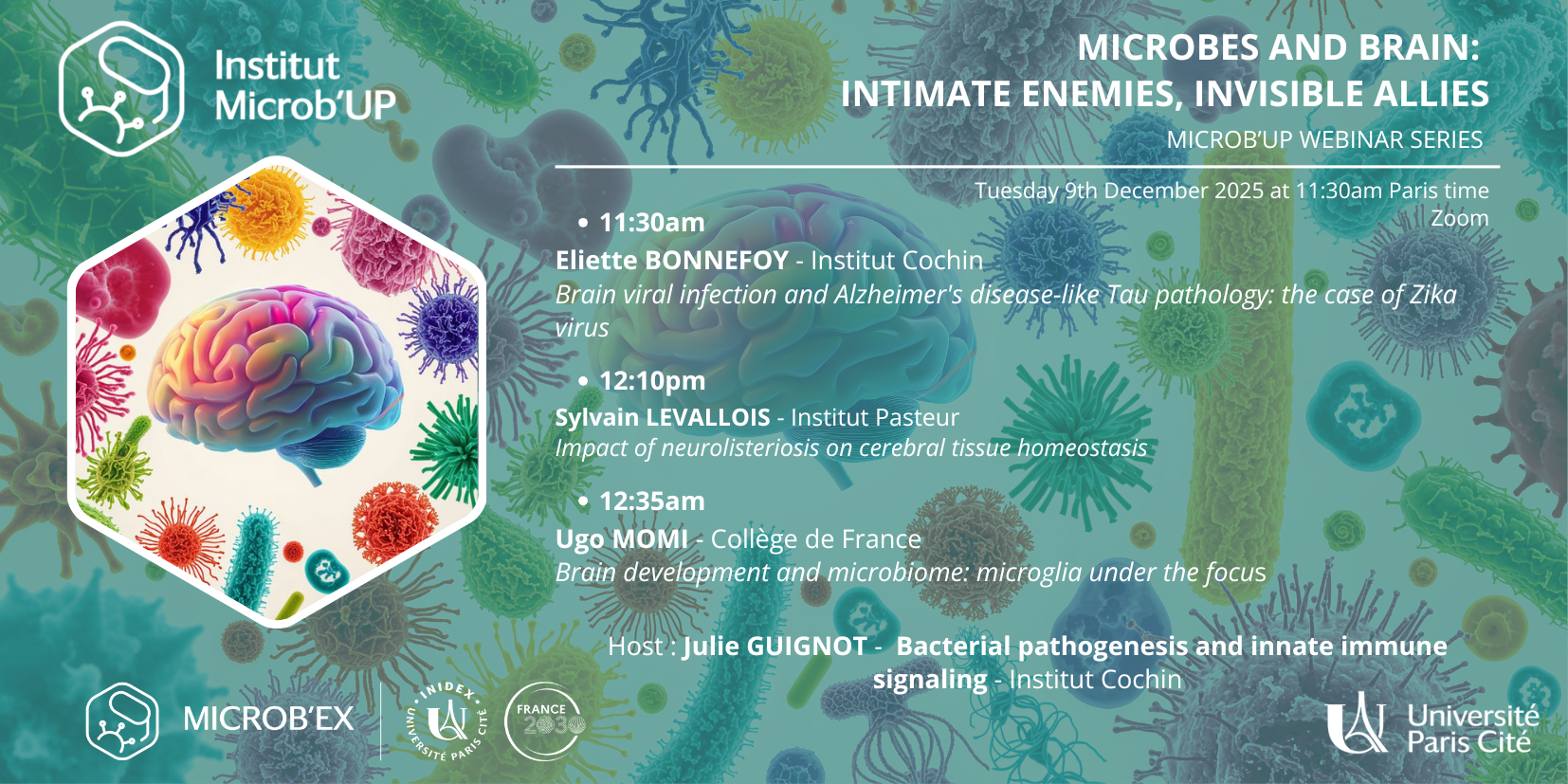 As part of the organization of the Microb’UP webinar series, the "Instituts Hors-Murs" (IHM) implement the processing of personal data. The legal basis for the processing is the performance of a task carried out in the public interest (Article 6 (1) e of the GDPR). The categories of personal data processed are those collected in response to questions (name, first name, professional email, unit, team). The organizers (IHM project manager and IHM supervisors) are, within the scope of their respective needs, the recipients of the data. The data is retained for one year from the collection of the form and then deleted. You can access your data, request its rectification or deletion. You can also object to the processing of your data or request the restriction of the processing of your data. To exercise these rights or for any questions regarding the processing of your data, you can contact the service responsible for the processing at suivi.ihm.sante@u-paris.fr or the Data Protection Officer (DPO) electronically at dpo@u-paris.fr. If you believe, after contacting us, that your rights under data protection laws are not being respected, you can submit a complaint online to the CNIL or by postal mail.